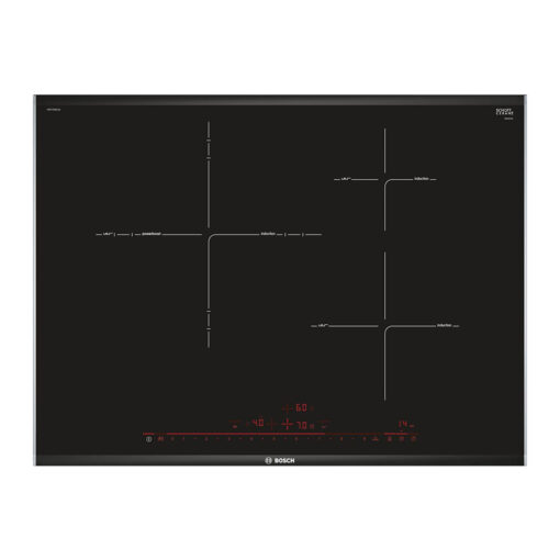 - Bếp Bosch PID775DC1E có các vùng nấu phân bố khoa học, bạn có thể đặt những nồi nấu có diện to mà không sợ bị va chạm.