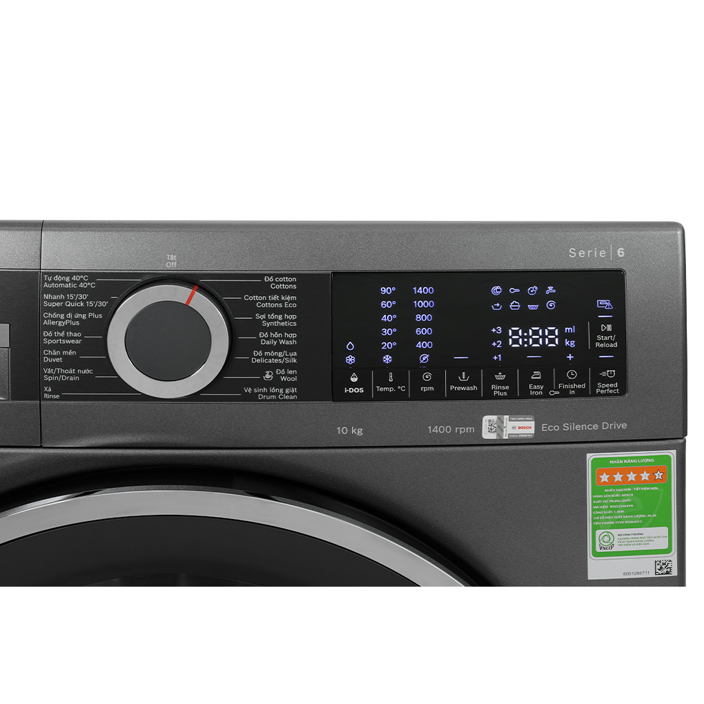 – Máy giặt Bosch này có khả năng giặt 10kg có khả năng giặt đồ cho hộ gia đình có từ 4-6 người.