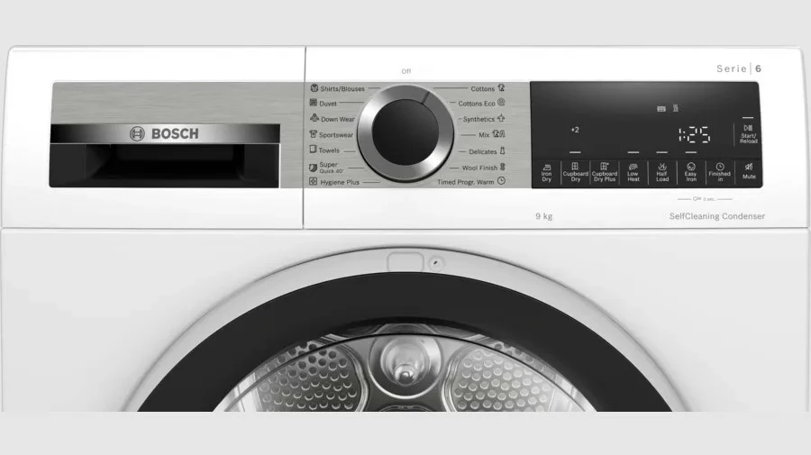 – Máy sấy Bosch WQG24570SG với công nghệ Autodry tải trọng tới 9kg nhẹ nhàng làm khô đồ giặt tới nhiệt độ bạn mong muốn như để ủi, phơi hoặc cất tủ. Các cảm biến trong máy sẽ đo nhiệt độ và độ ẩm trong máy sấy giúp bảo vệ quần áo không bị quá nhiệt và quá tải