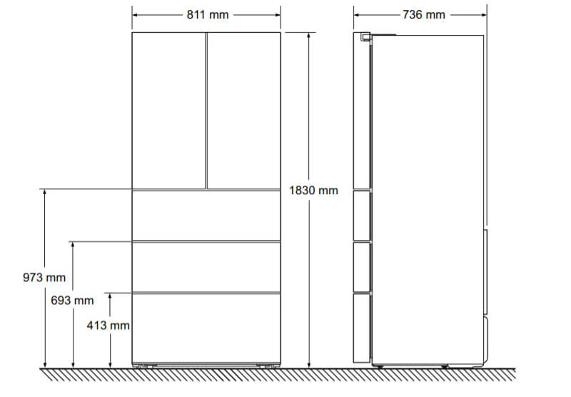 - Thiết kế bao gồm một khoang lạnh, một ngăn kéo Vitafresh (có thể điều chỉnh nhiệt độ và mức độ ẩm),2 ngăn đông riêng biệt